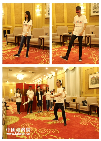 兩岸青年一起學(xué)習(xí)京劇招式。(中國臺(tái)灣網(wǎng) 趙苗青 攝)