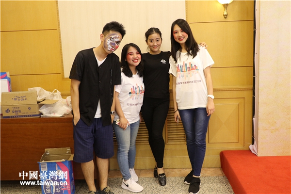 畫好京劇臉譜的兩岸青年合影留念。(中國臺(tái)灣網(wǎng) 趙苗青 攝)