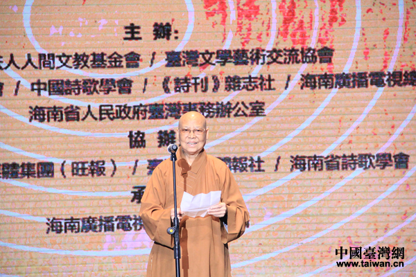 海南國際佛光會世界總會署理會長慈容法師揭曉2016兩岸詩會“桂冠詩人”獲獎名單。(中國臺灣網 楊永青 攝)
