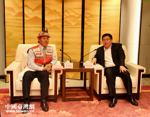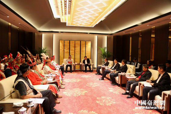 海南省委常委、統(tǒng)戰(zhàn)部長張韻聲會見臺灣少數(shù)民族參訪團。(圖片來源:海南省臺聯(lián))