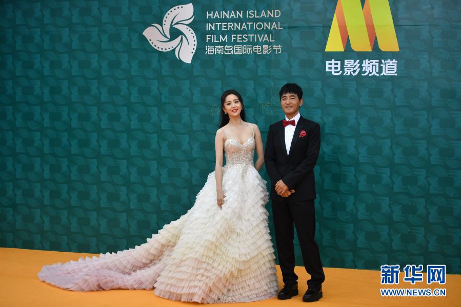 12月12日,演員佟麗婭(左)、郭曉冬亮相電影節紅毯儀式。當日,第三屆海南島國際電影節在三亞閉幕。新華社記者 郭程 攝