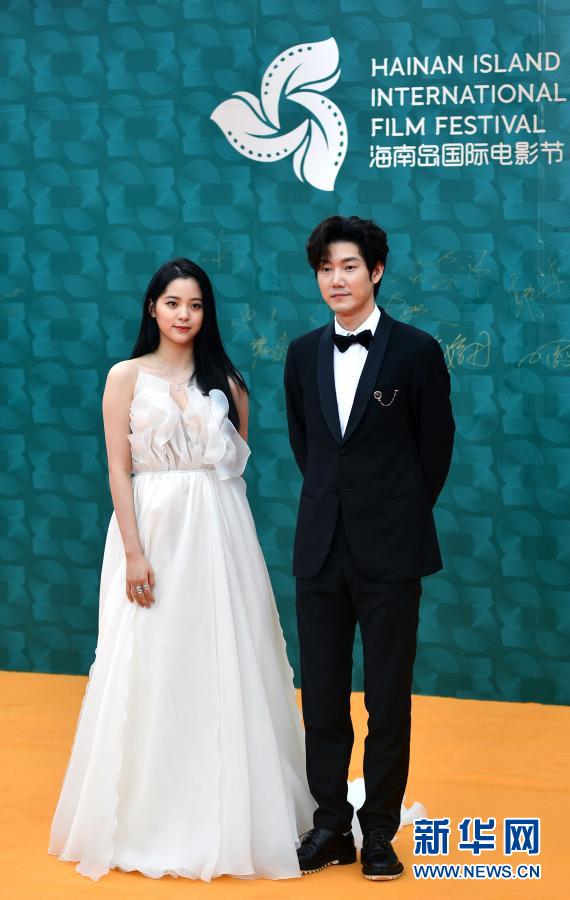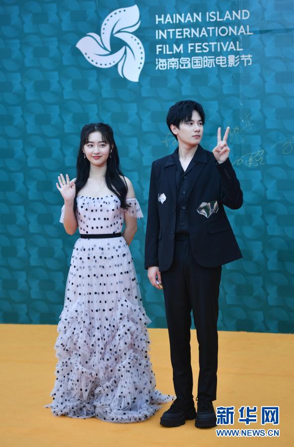 12月12日,演員鄧恩熙(左)、胡先煦亮相電影節紅毯儀式。新華社記者 郭程 攝