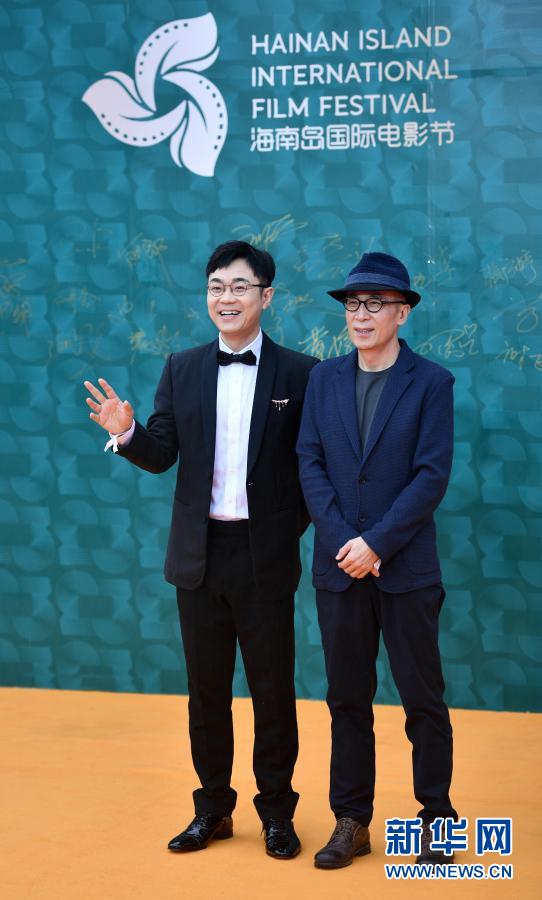 12月12日,演員大鵬(左)、導演曹保平亮相電影節紅毯儀式。新華社記者 郭程 攝