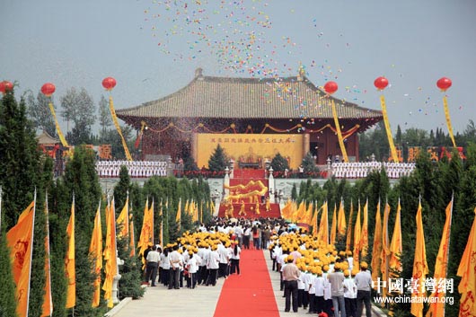 伴隨著《三祖頌》的激揚樂聲,全國臺灣同胞投資企業聯誼會會長張漢文等,向黃帝、炎帝、蚩尤塑像敬獻花籃。臺胞代表、來賓代表向中華民族始祖像敬香祭拜。在肅穆莊嚴的氣氛中,張家口市市長鄭雪碧恭讀了祭文。合唱隊高唱《龍的傳人》,若干舞龍者共同手持巨型龍飛舞,象征龍的傳人中華民族子孫萬代向著未來騰飛。2009只彩球騰空而起,象征中華民族長治久安。56顆禮花彩炮空中綻放,象征56個民族大團結及向往幸福生活的美好心聲。