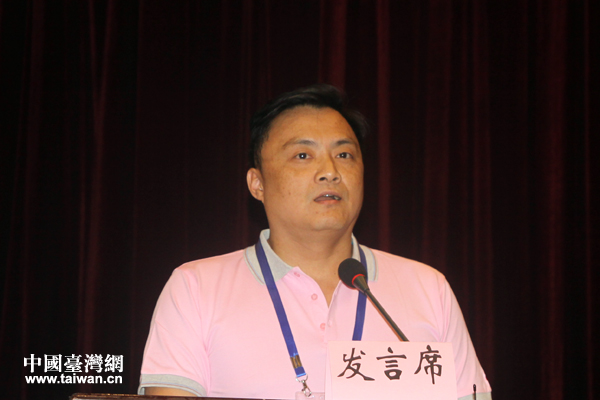 臺灣夏潮聯合會評議長許育嘉致辭。(中國臺灣網 李杰 攝)