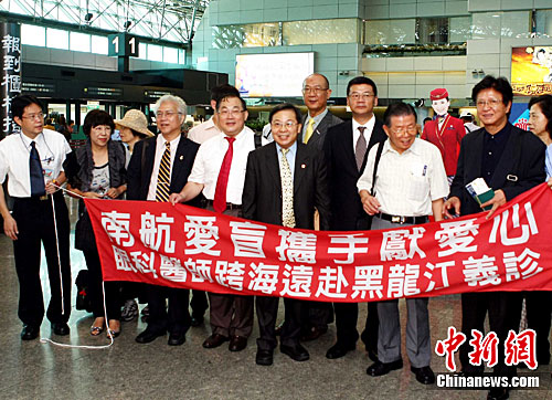 7月13日,臺灣愛盲協會13位醫師愛心人士組成的醫療團,從臺灣桃園機場乘坐中國南方航空公司臺灣分公司免費提供的航空服務,前往黑龍江省,在7天時間里為哈爾濱、齊齊哈爾等地350名貧困白內障人士實施手術并贈送優質人工水晶體,使患者重獲光明。中新社發 宋吉河 攝