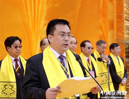 臺灣省李氏宗親總會代表團團長李蘭鳳在恭讀祭先祖老子文。圖片來源:周口市臺辦