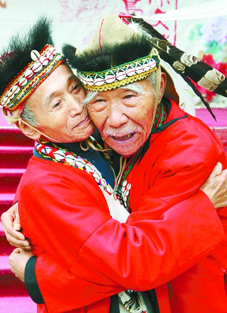 一個是阿里山,一個是千山萬水之遙的河南,在這一刻卻顯得如此親密無間。原來,300多年前,臺灣阿里山鄒族那思羅等村民隨鄭成功部將黃廷赴河南鄧州市屯墾,與當(dāng)?shù)鼐用窈湍老嗵帲毖苌⑹诮裉爨囍菔械膹埓彐?zhèn)上營村形成了580戶、2600多名臺灣少數(shù)民族后裔的“臺灣村”,他們至今還保存著許多臺灣鄒族的生活習(xí)慣和風(fēng)俗禮儀。作為“中原文化寶島行”的重要內(nèi)容,上營村村主任湯清義率村民代表來特富野探親謁祖,徐光春親自來參加他們的探親聯(lián)誼活動。