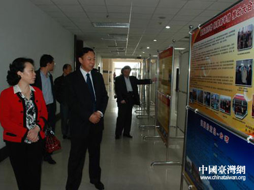 9月30日,省臺辦王慶春副主任一行專程到新鄉觀看了展板。(圖片來源:新鄉市臺辦)