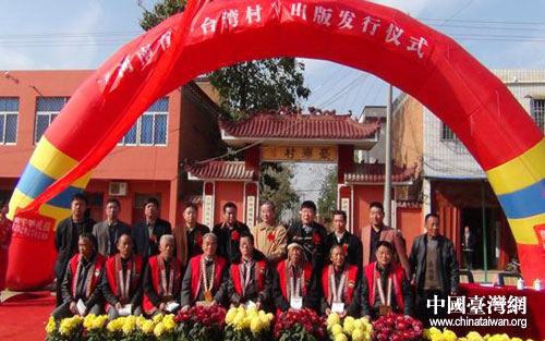 《河南有個(gè)“臺(tái)灣村”》一書(shū)發(fā)行儀式在“臺(tái)灣村”牌坊前隆重舉行。圖片來(lái)源:鄧州臺(tái)辦