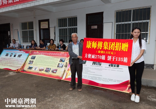 中國(guó)臺(tái)灣網(wǎng)9月18日洛寧訊 9月13日,康師傅集團(tuán)到洛陽(yáng)市洛寧縣西山底鄉(xiāng)孫洞村扶貧捐助,為孫洞村135戶貧困戶捐贈(zèng)了價(jià)值2.5萬(wàn)余元的方便面、面包等食品,送去中秋祝福。省臺(tái)辦副主任崔興莉、洛寧縣委統(tǒng)戰(zhàn)部長(zhǎng)張根苗、康師傅集團(tuán)方便面事業(yè)工會(huì)主席竹新南等出席捐贈(zèng)儀式并發(fā)言。