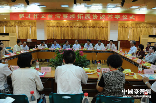 楚才作文臺灣賽場拓展協議簽字儀式。(湖北省臺辦 陸勝 攝)