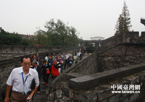 兩岸新媒體荊楚行采訪團(tuán)來到古城墻內(nèi)。(中國臺灣網(wǎng) 段雯婷 攝)