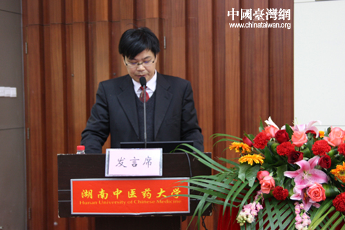 湖南中醫藥大學國際教育學院院長、港澳臺辦公室主任彭清華教授介紹對臺教育與交流情況(中國臺灣網 楊永青 攝)