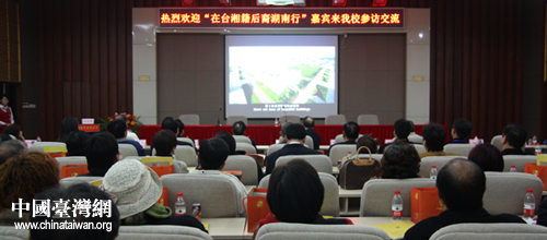 其中教育組由七十余名臺灣嘉賓組成,他們的家鄉分別是常德、婁底、懷化、張家界。本網記者跟隨教育組來到湖南中醫藥大學,聽取校方介紹學;厩闆r及對臺教育交流的情況。