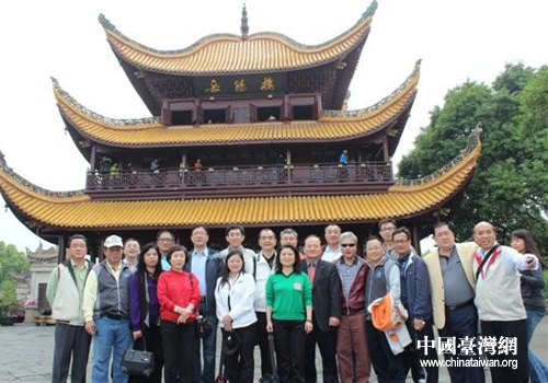 臺灣基隆市議會參訪團一行在岳陽樓前合影留念。(岳陽市臺辦 易濤 攝)