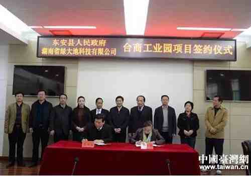 中國臺灣網12月15日東安訊 12月9日下午,東安縣與湖南省綠大地科技有限公司就建設“臺商工業園項目”簽訂招商引資合同書,標志著“臺商工業園項目”正式落戶東安。縣委書記馮德校,縣委副書記、縣長龍向洋,縣人大常委會主任張波和彭俊卿、唐振宇、張一波等縣領導出席簽約儀式。