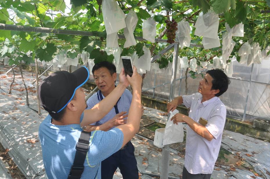 臺商考察團來到澧縣葡萄產業園現場考察施用有機肥的葡萄作物