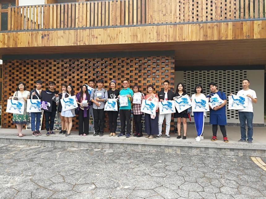 兩岸師生在“光點聚落”前合影