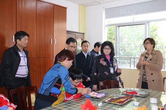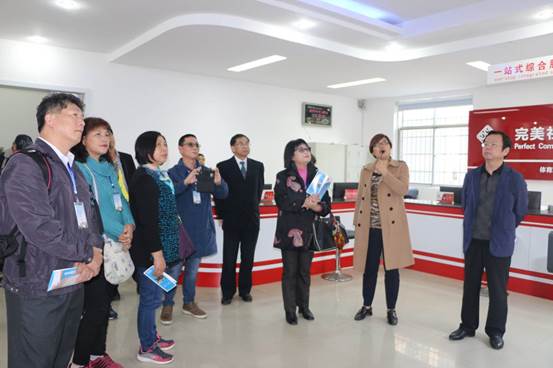 秋日暖陽中的體育東路社區安靜整潔,舒適祥和。參訪團一行在常德市政協副主席陳位明以及市臺辦、市民政局和武陵區相關領導的陪同下,饒有興致地參觀了社區服務大廳、衛生服務中心、社區警務室等設施和殘障人士居家服務中心、田工愛心屋、老年活動中心等志愿服務機構,并與武陵區基層社區負責人進行了座談交流。