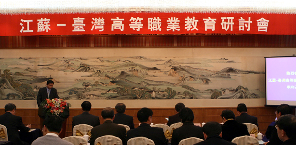 12月18日,江蘇——臺灣高等職業教育研討會在南京召開,本次研討會的主題是“加強兩岸教育合作交流,共同提升教育品質和人才競爭力”,研討會由省教育廳和省政府臺灣事務辦公室聯合舉辦。省教育廳廳長王斌泰出席研討會并作了主題報告,省政府臺灣事務辦公室副主任秦基春致辭,省教育廳副廳長丁曉昌主持研討會。來自臺灣的11所院校和江蘇28所高職院校負責人參加了研討會。