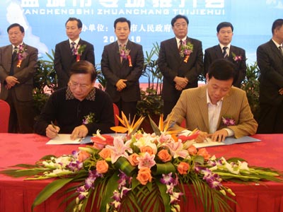 昨天(11日),鹽城市以“2007江蘇—臺灣經貿洽談會”為舞臺舉行專場推介會,吸引了650多位臺商與會。有16個超千萬美元重點項目簽約,總投資2.6億美元。