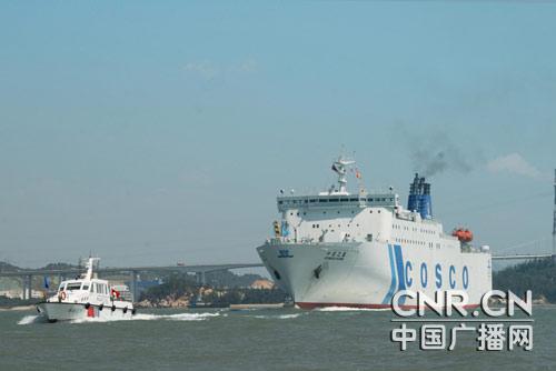 在廈門海事部門護航下,“中遠(yuǎn)之星”順利首航
