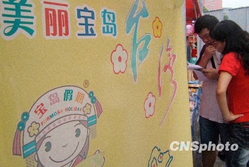 2009年10月12日,據臺灣《經濟日報》報道,臺當局“交通部觀光局”統計,今年大陸十一長假,包含觀光、業務、會議、探親等目的來臺的大陸客人數共達10957人,比去年同期增加逾1.5倍 中新社發 任衛紅 攝