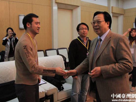 圖為原中共河南省委書記徐光春與臺灣媒體記者親切握手(中國臺灣網 徐維彬 攝)