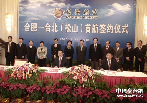 合肥——臺北(松山)首航簽約儀式(圖片來源:安徽省臺辦)