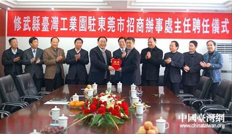 中國臺灣網12月6日焦作消息 日前,焦作市修武縣臺灣工業園駐東莞市招商辦事處主任聘任儀式在縣政府二樓會議室舉行,修武縣委副書記、縣長常鴻出席聘任儀式。