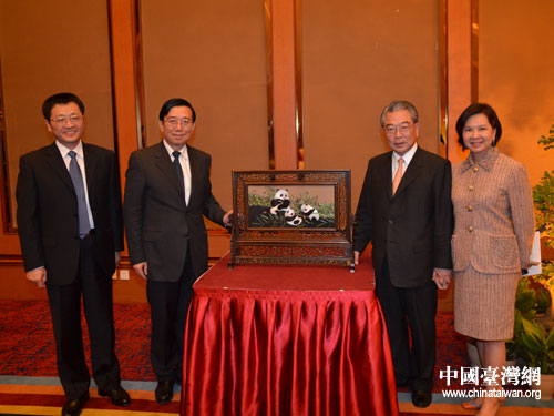 中共四川省委常委、成都市委書記李春城(左二),成都市長葛紅林(左一)與許勝雄夫婦。圖片來源:成都市臺辦