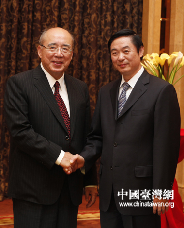 中國臺灣網5月8日成都消息 中共四川省委書記劉奇葆8日下午在成都會見中國國民黨榮譽主席吳伯雄和參加第七屆兩岸經貿文化論壇的部分臺灣代表。 (中國臺灣網 田云鵬 攝)