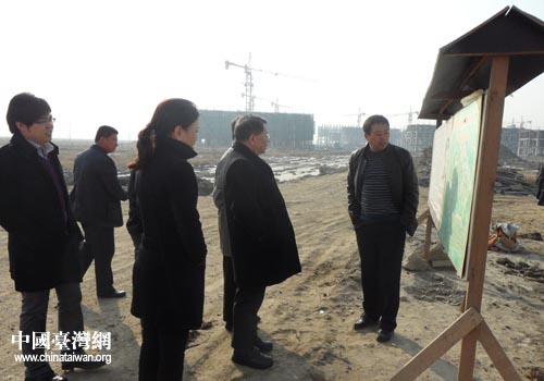 考察團一行在盤錦市盤山縣一工地現場考察(圖片來源:盤錦市臺辦)