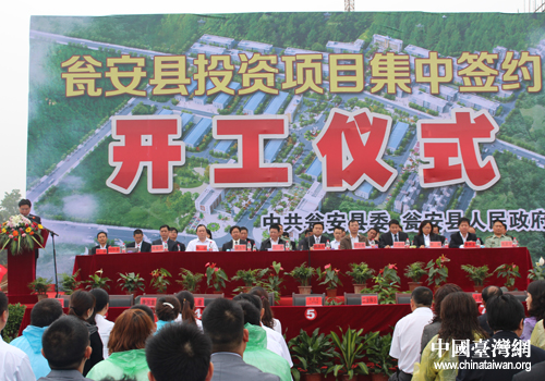 中國臺灣網6月11日甕安消息 日前,甕安縣投資項目集中簽約開工儀式在甕安工業園區返鄉農民工創業園隆重舉行。州委副書記、縣委書記陳昌旭,甕安縣委、政府領導及臺商代表、企業代表、工業園區代表等400余人出席簽約儀式。