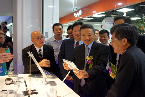 開幕式結(jié)束后,與會嘉賓在臺灣貿(mào)易中心成都代表處首席代表呂寬永、百腦匯總裁蔡明賢等主辦方代表陪同下,參觀設(shè)在百腦匯一層的智慧生活館展區(qū),感受精湛的科技時尚。置身于動感絢麗的環(huán)境中,人們仿佛進入了“未來世界”。世界首創(chuàng)的投影虛擬感測鼠標(biāo)、3D裸視屏幕、曾獲IF大獎和美國堤利威格玩具大獎的“未來車”、立體光固化技術(shù)3D打印機等高科技產(chǎn)品吸引了無數(shù)成都市民的目光。