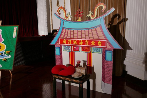 縮小版的霞海城隍廟,26日也出現在“上海微游雙城”記者會現場。(臺灣《聯合晚報》/邱瓊平 攝)