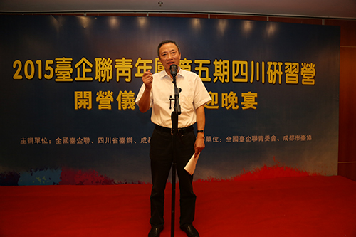全國(guó)臺(tái)企聯(lián)青委會(huì)主委陳燕木在2015全國(guó)臺(tái)企聯(lián)青年團(tuán)四川研習(xí)營(yíng)開(kāi)營(yíng)儀式上致辭。