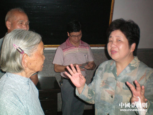 林明月與當(dāng)?shù)亓质献谟H用閩南語(yǔ)交流。(漳浦縣臺(tái)辦陳文亮攝)
