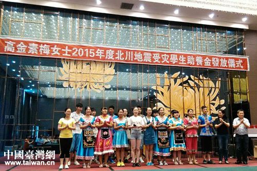 中國臺灣網7月23日成都訊 7月21日至22日,臺灣少數民族民意代表高金素梅如約來川向她資助的20個北川縣羌族孩子發放2015年度資助金。