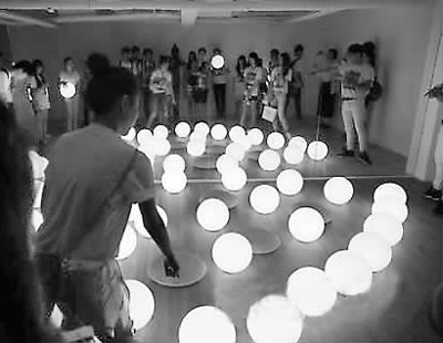學生觀看米亞藝術中心的藝術裝置。王慧珊攝