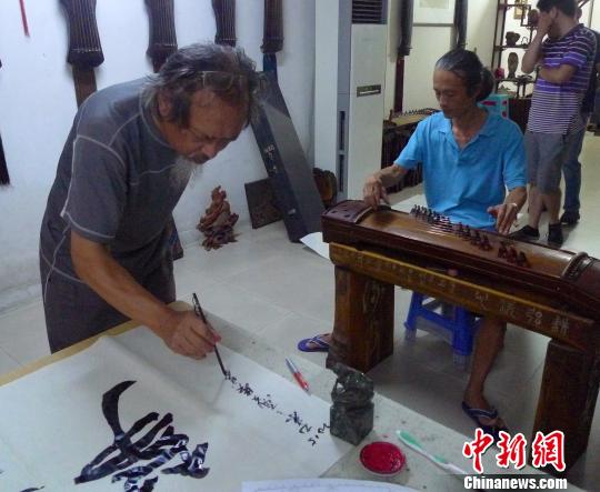 吳鼎仁現場揮毫,張木順展示閩南箏雅致琴音!∮嗟ぁz