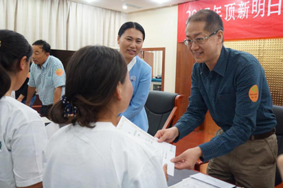 頂新公益基金會理事長騰鴻年向學生發放獎學金證書。