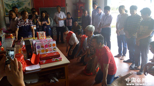 中國臺灣網6月14日廈門消息 (記者 蕪同)日前,從臺灣宜蘭縣赴廈門參加海峽論壇的陳世塤一行四人,跪在漳州南靖縣金山鎮霞涌村徑尾陳氏宗祠里,面對著祖宗牌位流下了眼淚。他們終于找到了自己家族的祖籍地,實現了幾代先人的期盼和囑托。