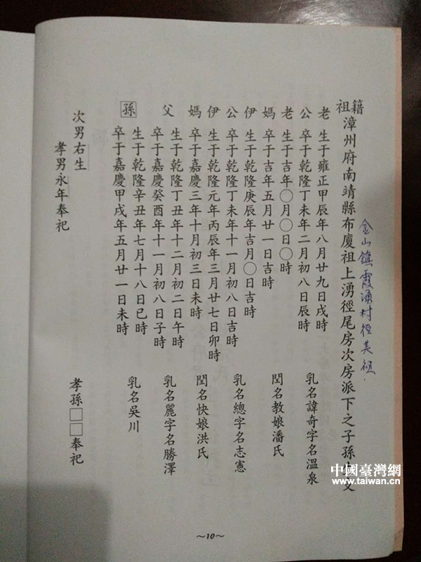 陳氏族譜的記載。(中國臺灣網 發)