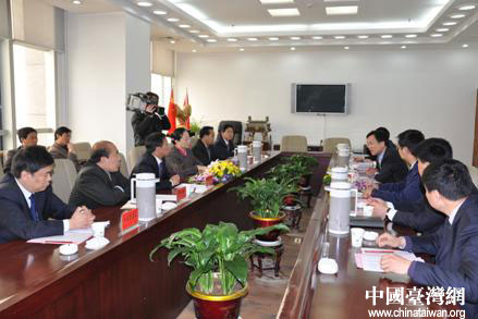 楊婭輝與李運昌一行座談。圖片來源:焦作市臺辦