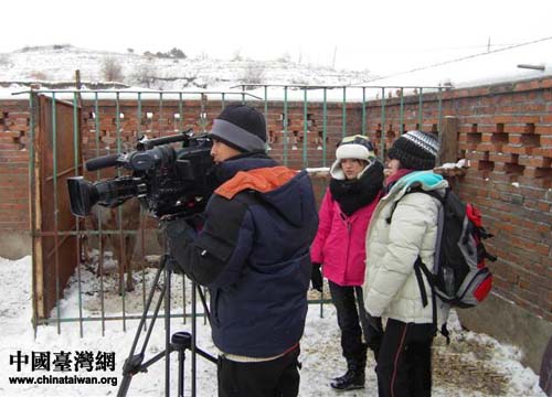 臺灣中天電視臺《臺灣腳逛大陸》攝制組在遼寧省鐵嶺市西豐縣鹿場現場拍攝(圖片來源:鐵嶺市臺辦)