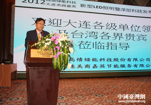 中國(guó)臺(tái)灣網(wǎng)5月25日大連消息 5月24日,由臺(tái)灣高績(jī)綠能科技公司、大連美商嘉英節(jié)能公司主辦的“2012大連LED新型照明暨深層科技發(fā)表會(huì)”在大連市舉辦。大連市委常委、副市長(zhǎng)曹愛(ài)華出席了發(fā)表會(huì),臺(tái)灣桃園市副市長(zhǎng)呂朝福,大連市臺(tái)辦等相關(guān)部門(mén)領(lǐng)導(dǎo)及媒體參加了發(fā)表會(huì)。