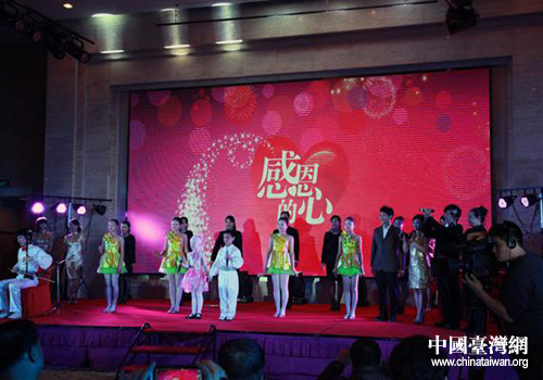 中國臺灣網12月10日丹東消息 日前,“呼喚愛心,情暖丹東”2012年丹東市工商聯光彩慈善基金成立晚會在皇冠假日酒店隆重舉行。臺灣演藝界人士方芳、胡瓜、言承旭、蘇霈、荒山亮等到場助陣。
