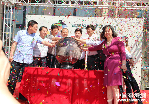 參加開幕式的領(lǐng)導(dǎo)點(diǎn)燃開幕式啟動(dòng)球。(圖片來(lái)源:撫順市臺(tái)辦)